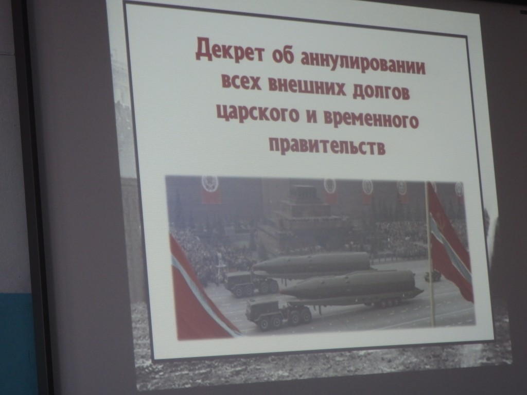 10 ноября прошел час информации для учащихся 8-9 классов, посвященный столетней годовщине Октябрьской революции. В ходе мероприятия учитель истории рассказала об основных событиях революции, поговорили о том, почему нельзя забывать это великое историческое событие и какие уроки можно извлечь из него сто лет спустя. В заключение мероприятия ребятам было предложено порассуждать над вопросом: Можно ли сказать, что Октябрьская революция в конечном итоге оказалась напрасной? Ребята высказали свои мнения, и Ольга Константиновна подвела итог обсуждению.