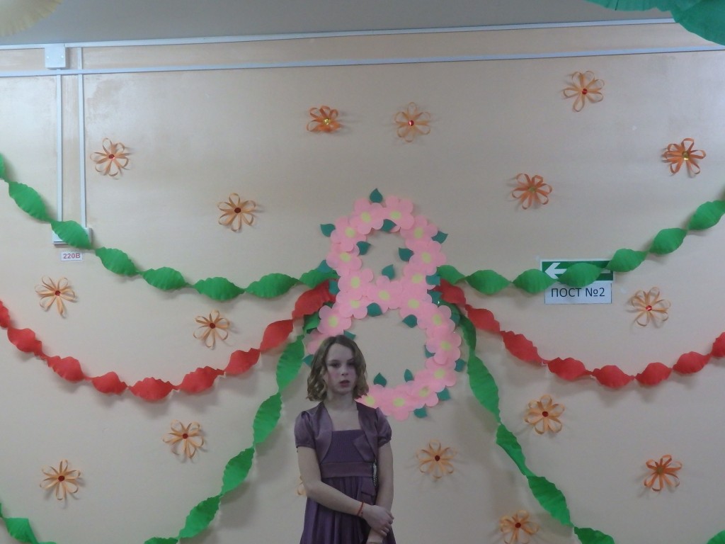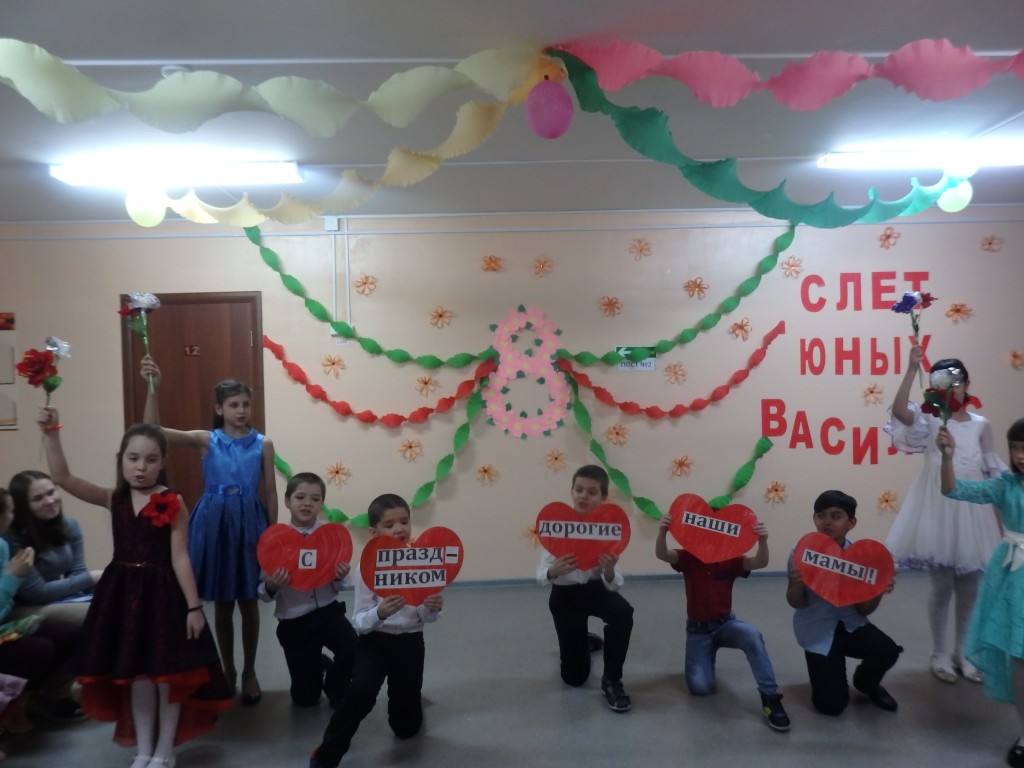 6 марта в нашей школе прошёл праздник, посвящённый 8 марта. На праздник были приглашены мамы, бабушки учеников. Ребята с педагогами подготовились к концерту, выступили все классы, чтобы поздравить мам, бабушек, девочек с праздником 8 Марта. Был приготовлен необычный подарок для женщин — весенний букет, который состоял из песен, стихов, танцев, слов поздравлений.